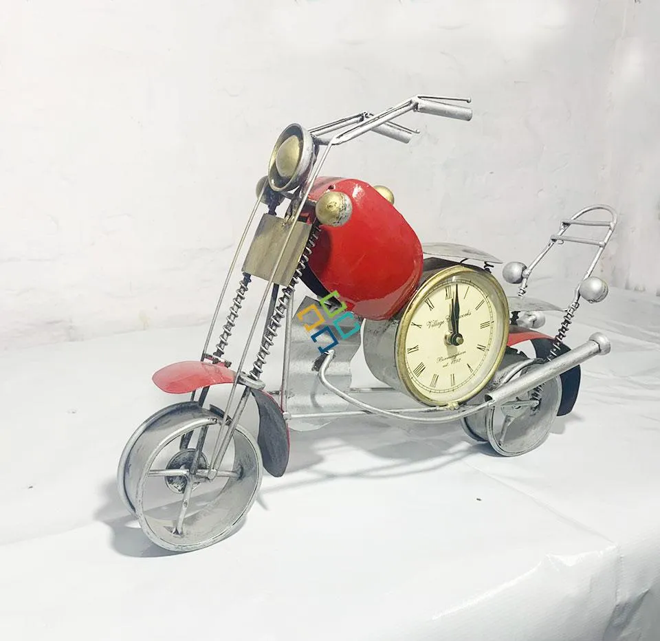 Antique Colorful Bullet Bike table top showpiece with clock