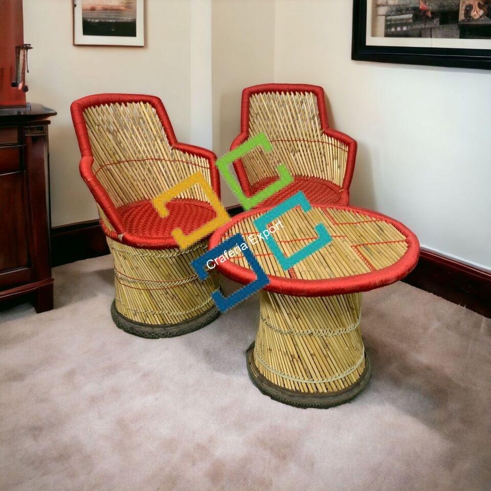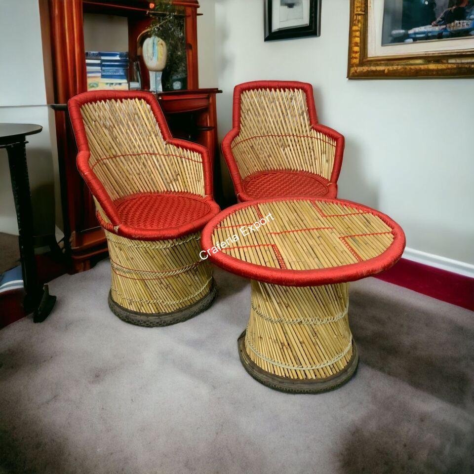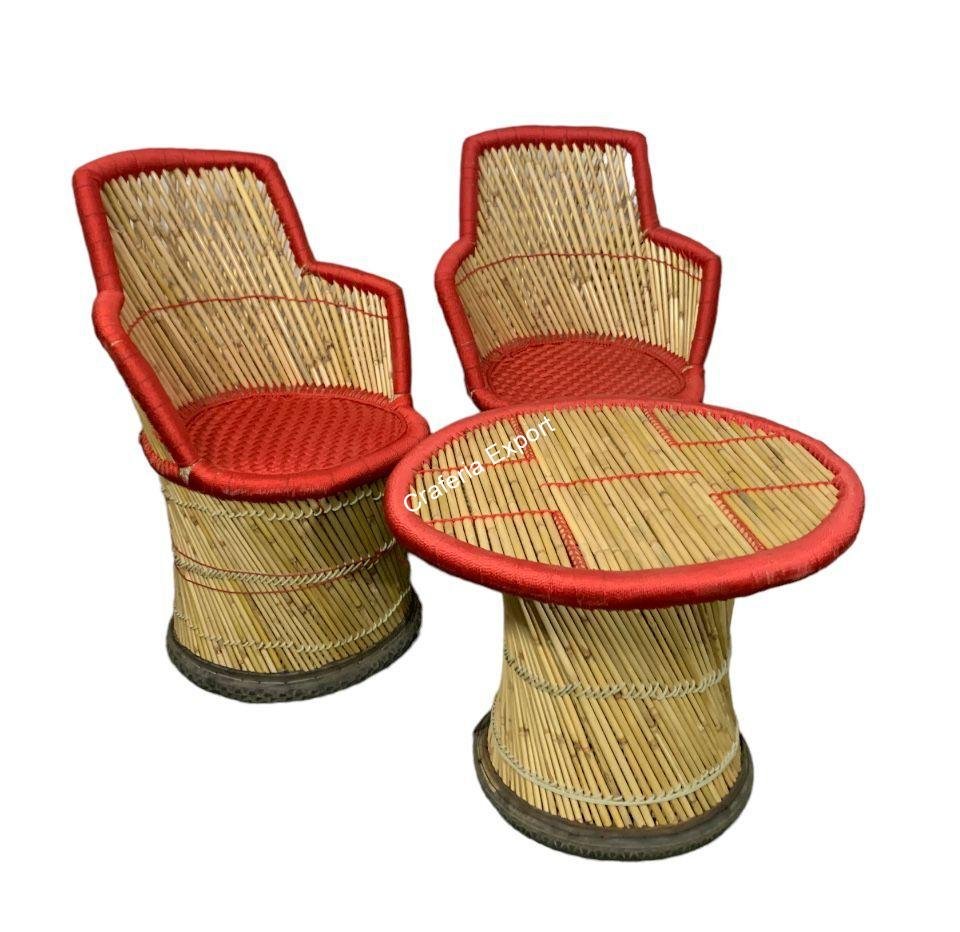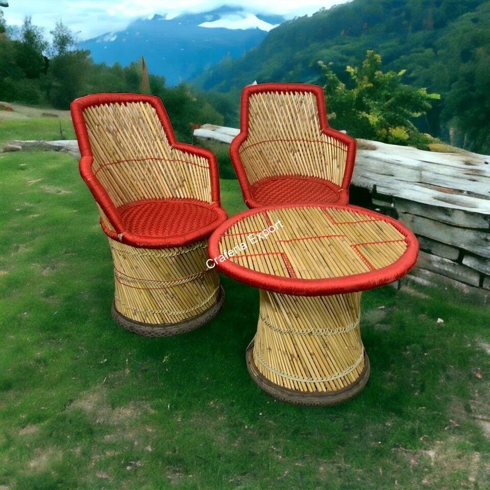- Ready to elevate your outdoor seating space with this exquisite Bamboo Red colour chair table set with armrest for balcony/outdoor.